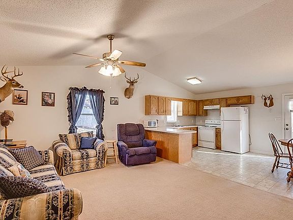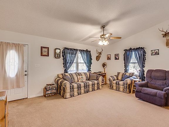 Spacious open plan! Large living room with vaulted ceiling open to kitchen & dining area. Range, dishwasher, refrigerator & eat-at bar in kitchen. Master bedroom has walk-in closet. Nice laundry room, back deck, covered front porch, nice level cul-de-sac lot with low maintenance yard. Eligible for USDA.