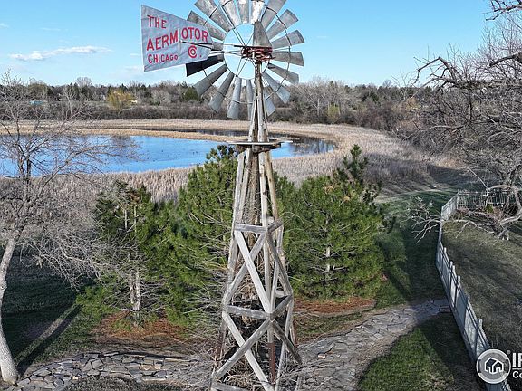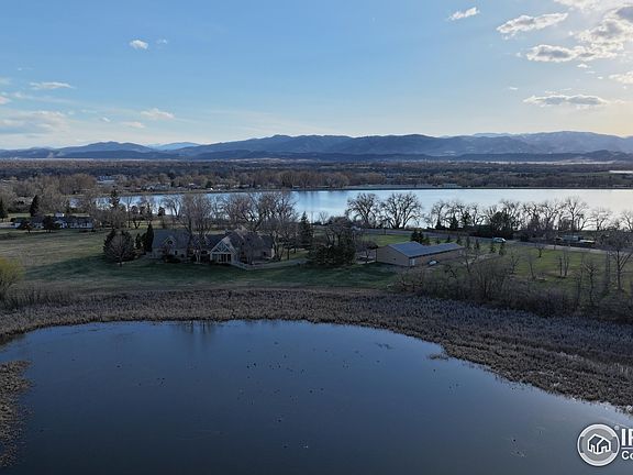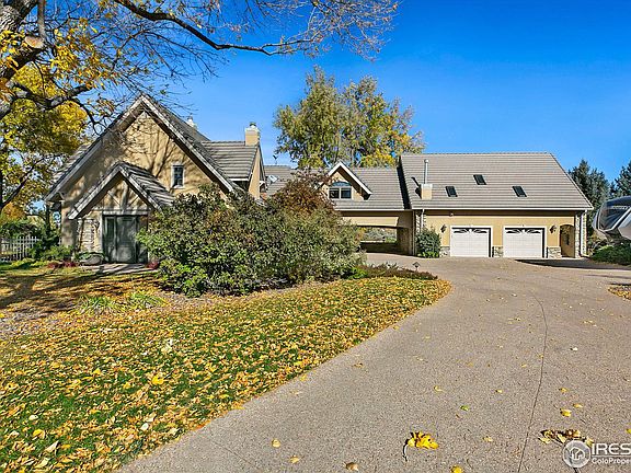 One of a kind Fort Collins home built with quality workmanship with fresh paint inside and out! 9+ acres overlooking a semi-private pond on the east side of the property and views of Terry Lake to the west. No HOA or Metro District. 4-stall horse barn with outdoor runs, pipe fencing and small corral make this a perfect equestrian set up. Hay fields could be fenced for pasture. Attached heated shop/RV storage with utility sink. Spacious all-weather sunroom has curtain walls opening to 2 patios and the beautiful lake view for a wonderful entertainment space. Kitchen features granite taken from the ocean floor in South America, 6 burner gas range with vented hood, regular oven, convection/microwave oven, warming drawer, 3 dishwashers, butlers pantry, 2 beverage fridges, and ice maker. Main floor primary bedroom features 2 closets, 5 piece en suite, bidet and steam shower. Second floor has had new paint and flooring thorughout, an additional primary bedroom, plus two additional spacious bedrooms, huge office and loft. Guest quarters w/private entrance, kitchen, bath, bedroom, laundry & sitting area. Multi-zoned in-floor radiant heat, natural slate floors, cement tile roof, stucco & natural stone. Stained or beveled glass featured in every room. Abundant storage space throughout. Beautiful portico connects the 2 car garage with in-floor radiant heat, 1/2 bathroom and laundry facilities, huge closet, dog washing station and fenced indoor/outdoor dog run. Concrete apron under entire backyard fence for ease of maintenance and custom flower boxes on separate irrigation zone. Abundant wildlife is the icing on the cake. 4' crawl space for storage and easy access to all systems.