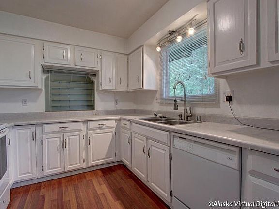 South Anchorage Ranch in Turnagain View. This corner lot is over 9,000 square feet, close to shopping, schools, and highway. Two sheds (one with electricity). 3 bedrooms, 1.5 baths, oversized 1-car garage, family room. Room for RV parking!