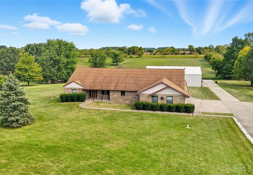Welcome to your private retreat in Xenia! Situated on a stunning 5-acre parcel, this expansive ranch offers room to spread out, relax, and enjoy country living while still being close to town. Step inside to find an inviting open-concept floor plan with 3 bedrooms, 2 full baths, and 2 half baths. The primary suite has two large walk in closets and a private door leading to the back deck overlooking the gorgeous backyard. You will find a convenient first floor laundry room with a built in elevator! The large kitchen and living areas flow seamlessly, providing plenty of space for gatherings.Stepping into the living room you have high vaulted ceilings accompanied by a cozy fireplace. A wide staircase leads to the full basement, complete with a second kitchen and open layout-perfect for entertaining, hobbies, or future customization. The basement offers a second fireplace and plenty of storage! Outside, you'll love the expansive back deck overlooking an above-ground pool, ideal for summer fun. Car enthusiasts or hobbyists will appreciate the 3-car garage and a pole barn with electricity and water, offering endless possibilities for storage or projects. The home is equipped with an efficient geothermal system for year-round comfort. With tons of square footage and a layout that's a blank canvas for your updates, this property is ready for its next owner to make it their own. Don't miss this rare opportunity to own acreage, space, and potential-all in one package! Seller is offering a concession for upgrades, ask your agent for more details.