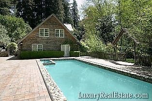 ELEGANT COUNTRY HOME. MAGICAL SETTING ON OVER 3 LEVEL ACRES. THE MONET INSPIRED GARDENS AND BABBLING BROOK ARE BEAUTIFUL. CATHEDRAL CEILINGS SET OFF THE GRAND RIVER ROCK/LOG WALLS AND FIREPLACE. 4 BEDROOMS, 2 BATHROOMS, SEPARATE GUEST COTTAGE WITH BATHROOM. GREAT POOL AND SPA WITH AUTOMATIC COVER. NEWER ROOF & GUTTERS.FENCED VEG.GARDEN,FIRE PIT.