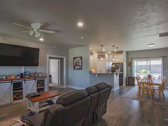 Nice reduction on this Gorgeous, nearly new single level home with split-bedroom design featuring 3 bedrooms, 2 baths plus an Office/Den/Toy Room. Kitchen features a breakfast bar, granite countertops, appliances including range/oven, dishwasher, built-in microwave in addition to a large pantry. Laminate wood-look floors throughout kitchen, dining and living room. Master bedroom has dual vanities, tub/shower and laminate flooring. Finished 3-car garage, potential RV parking, North facing tiered backyard, no rear neighbors and a large East side yard that is fully fenced. Plenty of room for entertaining or relaxing in the yard. Storage shed on the West side of the house for your yard equipment. Easy access to parks, schools, HWY 95, shopping, etc.