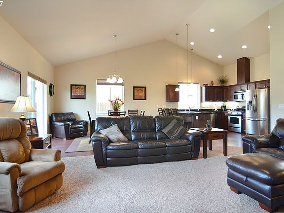 Like new Single level home perfectly situated in THE RESERVE! 1685' approx offers Great room floor plane. Vaulted Living room opening to dining room and Kitchen with bar seating, SS gas appliances. Master suite and 2 additional bedrooms. 2 car OS garage with RV parking. Covered front patio and covered back patio with lawn area and shed! Garden/flower beds. Custom built with seller adding on many additional options.