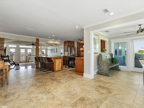 *Price Improvement AND $20,000 buyer credit at closing to be used at buyer's discretion (furniture, closing costs, buy down interest points etc.)* Paradise found! Ready to live like you are on vacation? This beautiful waterfront home is located down West Beach beyond the pass on Little Lagoon. Not only will you enjoy waterfront living on the Lagoon (complete with pier and boat dock with lift) but the house is also conveniently located directly across from deeded beach access that allows for unobstructed views of the Gulf of Mexico and an easy trip to the beach. This three bedroom, three bathroom home (with double en-suite bedrooms) has been completely updated and is turnkey. Three separate decks, all with amazing views, gives you plenty of places to relax and enjoy being at the beach. And don’t forget the hot tub— the perfect place to unwind and watch the sunsets or stars at night. You will love all of the attention to detail and extras including granite countertops in the kitchen and master bath, luxurious soaking tub (with a view), tons of natural light, storm windows, brand new air conditioning (2023), privacy shades, electric fireplace, new exterior lighting (some motion sensor), new Trex on front deck, Hurricane storm system window coverings, and the entire space underneath the back of the house that can be used for parking or as outdoor living space to entertain. This house has it all, even an adorable fire pit area that overlooks the water. Close enough to all of the excitement Gulf Shores has to offer but far enough down West Beach to be peaceful and relaxing. Call your realtor for a showing! (By appointment only) A/C was replaced in 2023. Water heater was replaced in 2020. There is a current termite bond on the home. All updates per the seller. Listing company makes no representation as to accuracy of square footage; buyer to verify.