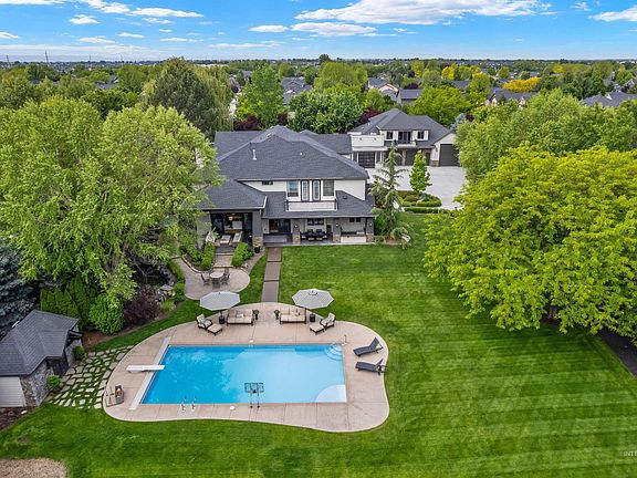 A private, luxury estate built for living, entertaining, and collecting. This meticulously crafted Northwest Meridian property features a 6,500+ sq ft main home with 5 en-suite bedrooms, gourmet kitchen, expansive great room with 14’ ceilings, a main-level primary retreat with dual closets and spa bath, home gym, and bonus room. Endless opportunities for hosting with a massive covered patio, outdoor kitchen, firepit, Hot-Tub, and waterfall feature—all surrounded by lush, mature landscaping and a sparkling pool. Car enthusiasts will love the 8-car shop with 50’ pull-through RV bay, vehicle lift, air compressor, wash stations, kitchen, and reclaimed barnwood finishes, plus a furnished 2-bed/1-bath 1255 SqFt guest home with full kitchen and private living above. Designed for ease and luxury, the property also features whole-home surround sound, walk-in pantry with commercial fridge, hidden storage, central vac, and no HOA. A rare blend of elegance and function in one of Meridian’s most coveted pockets. BTVAI.