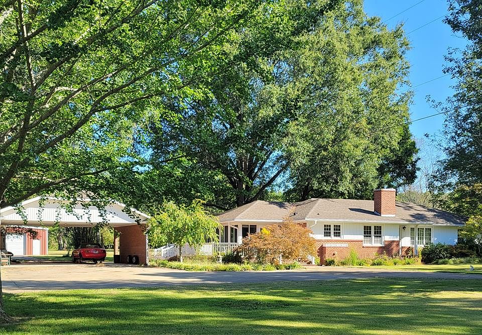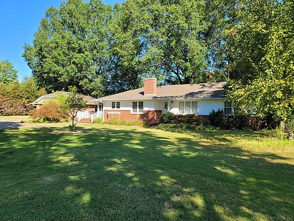 HOME LOCATED ON THE EDGE OF THE CITY AND ACREAGE IN THE COUNTY! Well maintained brick & vinyl ranch home with a 30x40 metal insulated building (10+ foot ceiling), detached 2 car carport and located on 6.6 acres. Owners took great pride in the lawn and landscaping. Lots of mature trees, including several pecan trees that produced several gallons each year. Sun-room has heated tile floors, granite countertops in the kitchen and hardwood under the carpet in den, living room, two bedrooms and hallway. Approximately 3 1/2 acres behind the house is located in the county. Neighbors on both sides have expressed interest in purchasing some of the land that adjoins them. Appliances included.