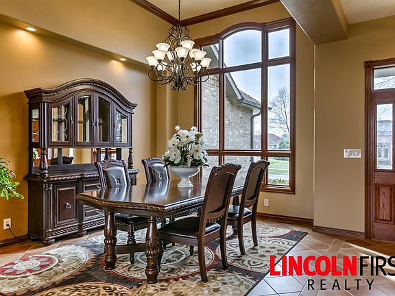 Beautiful stone/brick ranch home that backs to beautiful Wilderness Ridge Golf Course with spectacular views, great features, and great street appeal. Lots of natural daylight with this home's many ceiling to floor windows. 1st floor features soaring ceilings, open tile foyer, formal dining area, large living room with 3 atrium doors covered deck, 1st floor master bedroom with large shower, double sinks, whirlpool tub, large walk in closet with window, and door to the deck in back. Kitchen, hearth/great room with fireplace and informal dining room all include tiger wood floors, cabinets are cherry wood, pantry, granite counter tops, island with jenn air gas cook top and double ovens. 1st floor laundry is adjacent to kitchen with loads of cabinets, sink and closet. Basement features open and spacious family room with fireplace, tiled area with 10ft wet bar/kitchen area, bathroom and 2 bedrooms. Garage includes beautiful storage units along wall of garage. New roof 2 year ago.
