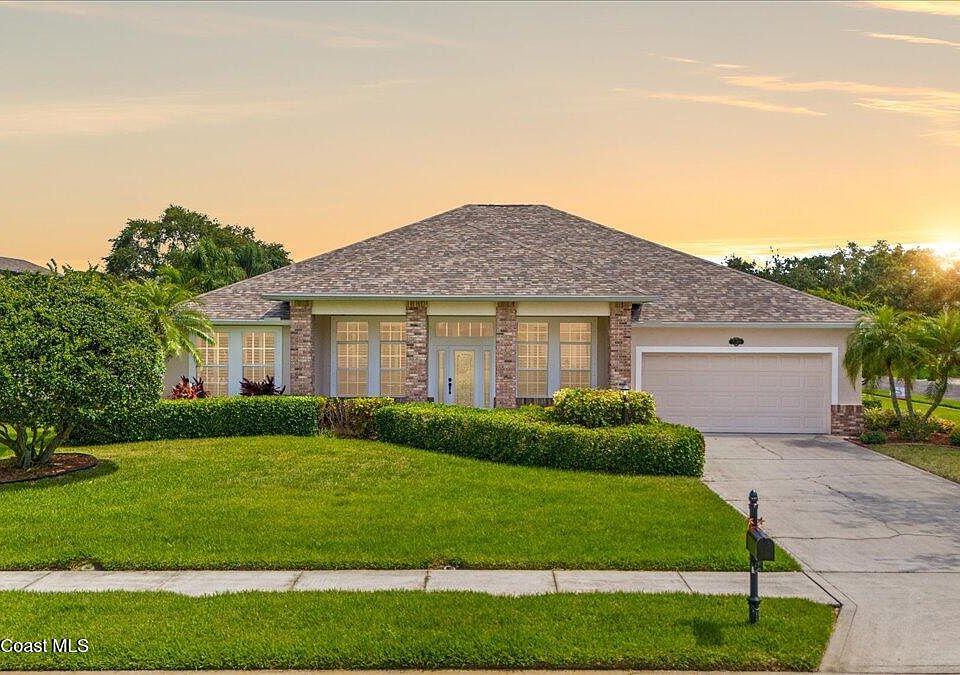 Your dream front porch awaits! Brand New Roof (June 2025). This charming, move-in ready home is located on over a quarter of an acre in a gated community. Concrete block constructed, corner lot, and over 2,000 Sq Ft of living space. This property features 3 bedrooms + a home office that can be converted into a 4th bedroom. Fresh new interior paint throughout. Both the garage and large back porch have been upgraded with brand new epoxy flooring. The kitchen and bathrooms have been tastefully updated, including a gas range for cooking enthusiasts. The primary suite offers his and her large walk-in closets for ample storage. Enjoy a low HOA of $815 a year. Located in a peaceful gated community with a community pool and park, great for little ones and pets. Within minutes to great schools, downtown Melbourne, and the beach. This home combines comfort and style, an opportunity you don't want to miss.