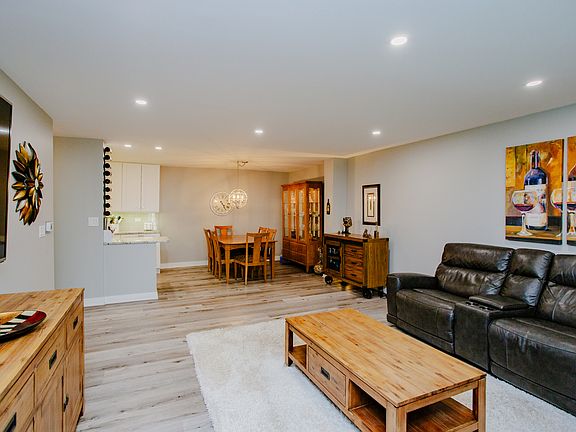 This completely renovated 2 bed, 2 bath condo has a beautiful and peaceful view of the forest preserve! Every room has been updated and every door has been replaced! Beautiful new vinyl plank flooring and paint throughout the living areas. The bedrooms are both freshly painted and newly carpeted. Elegant base moldings and remote- controlled ceiling fans were added to both bedrooms. The renovation of the kitchen included the removal of a wall to open the space up to the dining and living room. With custom white cabinets (and under-cabinet lighting), stainless appliances and granite counters, plus a separate fridge for entertaining, this kitchen is gorgeous! Both bathrooms were also completely remodeled with new flooring and 5inch moldings added, and all fixtures replaced to create s spa-like feeling. All the light fixtures have been updated, new digital thermostats and a new electrical panel have been installed. There is one garage spot with this unit and a storage unit as well. So many pluses!