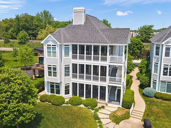 Experience the epitome of lake living! Indulge in the splendor of this exquisite ground level condo with assigned pier, providing a maintenance-free lifestyle in one of Winona Lake's most coveted locations. Situated just a short distance from the Village at Winona, you'll have easy access to fine dining, shopping, captivating art festivals, and a front-row seat to the magnificent Independence Day fireworks display. As you arrive at Harbor Shores, your family and friends will appreciate the convenience of private parking, while you relish the luxury of your personal garage. Upon entering through the front door, you'll be greeted by impeccable craftsmanship and contemporary elegance. Tiled floors guide you seamlessly from the foyer into the main living spaces where hardwood floors warm up the style. The expansive kitchen boasts an abundance of custom-made cabinets, adorned with granite countertop and an oversized island featuring a convenient breakfast bar. The open concept floor plan creates an ideal setting for hosting gatherings and fostering cherished memories. The heart of this condo encompasses the inviting living room, dining area, corner fireplace, and access to the large screened porch overlooking the all-sports lake. Additionally, the lakeside primary suite is designed to offer breathtaking lakefront vistas and an abundance of natural light. The en-suite bathroom features a double sink vanity, a generously sized walk-in closet, and a beautifully tiled walk-in shower. Towards the rear of the unit, you'll find two additional bedrooms, a full bathroom, and a laundry room, providing ample space and functionality. Additional amenities include reverse osmosis system, walk in pantry, alarm system, custom window treatments and more! The perfect place to embrace the lake life, relishing in its beauty and taking advantage of the close proximity to all the amenities and attractions that Winona Lake and Warsaw have to offer.