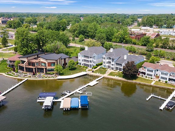 The kind of lakefront condo you dream about. This spectacular penthouse near the heart of Winona Lake boasts an updated and still like-new interior. With panoramic views of the Lake and the most beautiful sunrises that you can enjoy from almost every room at Unit H. Offering over 2,700 finished sq ft with spacious floor plan, designed with you in mind. As you enter, you're guided down to the living area with vaulted ceilings and corner fireplace open to the adjacent dining area. With original hardwood floors that are highlighted by the natural light that filters indoors. Nearby, the upgraded kitchen with beautiful cabinetry, granite counter tops, tiled back splash and new stainless appliance package. A great space to stay in and unwind after a pleasant day at the lake or entertain. You can access the lakeside screened porch from this area as well as the primary bedroom. The primary suite is located at the lakefront side as well and features tray ceilings, a large foot print with generous, private en-suite. Double sink vanity, garden tub, stand up shower, makeup vanity and a custom walk-in closet system. Down the hall you'll find the additional bedrooms and bath. Laundry room nearby, storage room and private elevator access. In addition, you'll appreciate having an 'attached' garage with storage cabinets plus parking for guests. Come live life at the highly desired Winona Lake Village. Just a very short and walkable distance to this home!