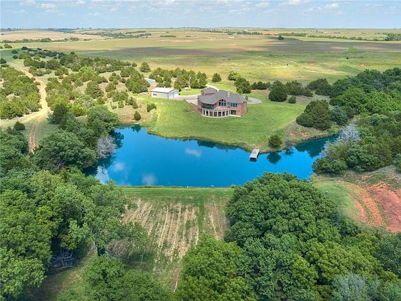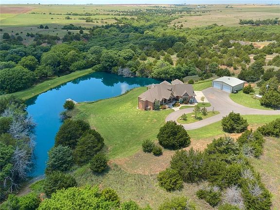 40 Acre custom built luxury Garrell & Assoc. Architect home in private tranquil setting over looking small lake & rolling hills. Multi level home offering 1st Floor: 2230sq ft, Terrace Floor 2082 sq Ft =4312sq ft & Garage 747 sq ft approx. Main level offers a lg open kitchen w/ custom cabinetry & granite counters, formal living w/ cathedral beamed ceiling, formal dining with stone gas log fireplaces located in both living & den areas. Open kitchen w/ commercial fridge & range, lg breakfast bar & kitchen dining area that opens up to lg terrace overing looking the lake & spectacular country view. Upper level is an unfinished bonus room approx 458 sq ft. Lower level walkout basement offers a 2nd kitchen, lg open 2nd living area w/ 3rd stone fireplace, bedroom, full bath, lg office/study, misc. / flex room can be exercise or storage room w/ safe room. Lg walkin closets, granite counters, 8ft Pella doors.