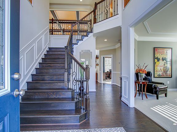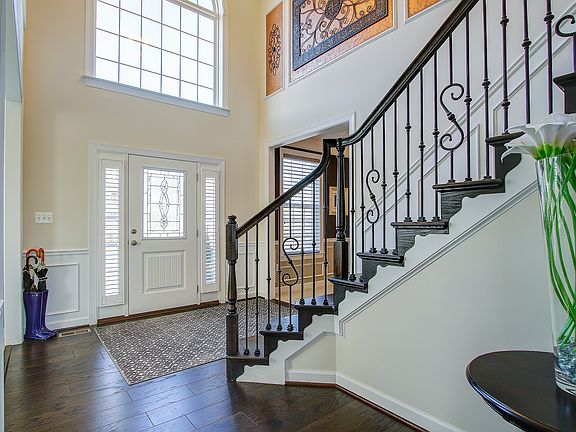 ~$70,000 AFTER ORIGINAL PURCHASE UPGRADES! AND IT SHOWS! This stunning brick front SFH sited on a premium lot backing to woods has just under 5,000 finished square feet of living space! Welcoming you in through the gorgeous stained-glass front door with transom windows leading to the sun filled, two story foyer enjoying neutral paint, Palladian window, crown molding, chair railing, shadow boxing, custom light fixture and gleaming hardwood flooring. The sophisticated Living Room offers designer ~Smoke and Mirrors~ paint, plush neutral carpeting with upgraded padding, crown molding, custom ceiling trim and plantation shutters. The adjacent formal Dining Room features designer paint, crown molding, chair railing, shadow boxing, custom ceiling trim, plush neutral carpet with upgraded padding and custom window treatments. (Chandelier & wall sconces in photos do not convey). The Gourmet Kitchen is an entertainer~s delight enjoying Alaskan White granite counter tops and Calcutta gold marble herringbone-style backsplash, stainless steel appliances, a wall oven, a 5 Burner cooktop with pot filler and exhaust hood, custom glass door cabinetry, expansive island/breakfast bar with farm sink and custom pendant lighting, recessed lighting, under cabinet lighting, a walk-in pantry, ~King Arthur~s Court~ designer paint and beautiful hardwood floors. All cabinets are upgraded with a "soft close" feature. The sun filled Breakfast Area offers crown molding, plantation shutters and a glass door leading to the expansive Trex deck. (Chandelier in breakfast area shown in photos does not convey). Extending off the kitchen is the grand, two-story Great Room featuring Palladian windows, custom painted coffered ceiling with recessed lighting, a gas fireplace with two-story stone surround, designer ~Revere Pewter~ paint and gleaming hardwood flooring. The Professional Office enjoys plush neutral carpeting with upgraded padding, ~Newburyport Blue~ designer paint, crown molding, recessed lighting, and windows with custom treatments allowing the natural sunlight to flood the room. The main level also features an elegantly appointed powder room with custom ceramic wall tile and pedestal sink. The Master Bedroom Suite features plush neutral carpeting with upgraded padding, neutral paint, ceiling fan light fixture, recessed lighting, crown molding, a Palladian window and a sun filled sitting area with cathedral ceiling. Custom upgraded, dual walk in closets feature built-ins and glass enclosed cabinetry, recessed lighting and a gorgeous chandelier. The Master Bathroom features ceramic tile flooring, dual vanities with " River Bordeaux" granite counter tops and upgraded cabinetry, soaking tub with ceramic tile surround, separate frame-less glass enclosed shower with seating, and a private water closet. Bedroom 2 is a Princess Suite featuring plush neutral carpeting with upgraded padding, neutral paint, windows for natural light, a spacious closet and en suite bathroom with ceramic tile flooring and glass enclosed shower. Bedroom 3 offers plush neutral carpeting with upgraded padding, neutral paint, a large window and a spacious closet. Bedroom 4 features plush neutral carpeting with upgraded padding, neutral paint, two windows for natural light and a spacious closet. The upper level also includes a full bathroom accessible from the hallway with ceramic tile flooring, double vanity sink with under cabinet storage and a shower/tub combo. The Lower Level Recreation Room features a custom Shiplap accent wall, recessed lighting, plush neutral carpeting with upgraded padding, neutral paint and a Wet Bar enjoying ceramic tile flooring, New Caledonia granite counter tops, Carrera marble herringbone-style backsplash, recessed lighting and custom pendant lighting. The list goes on and on! This one is a MUST SEE!