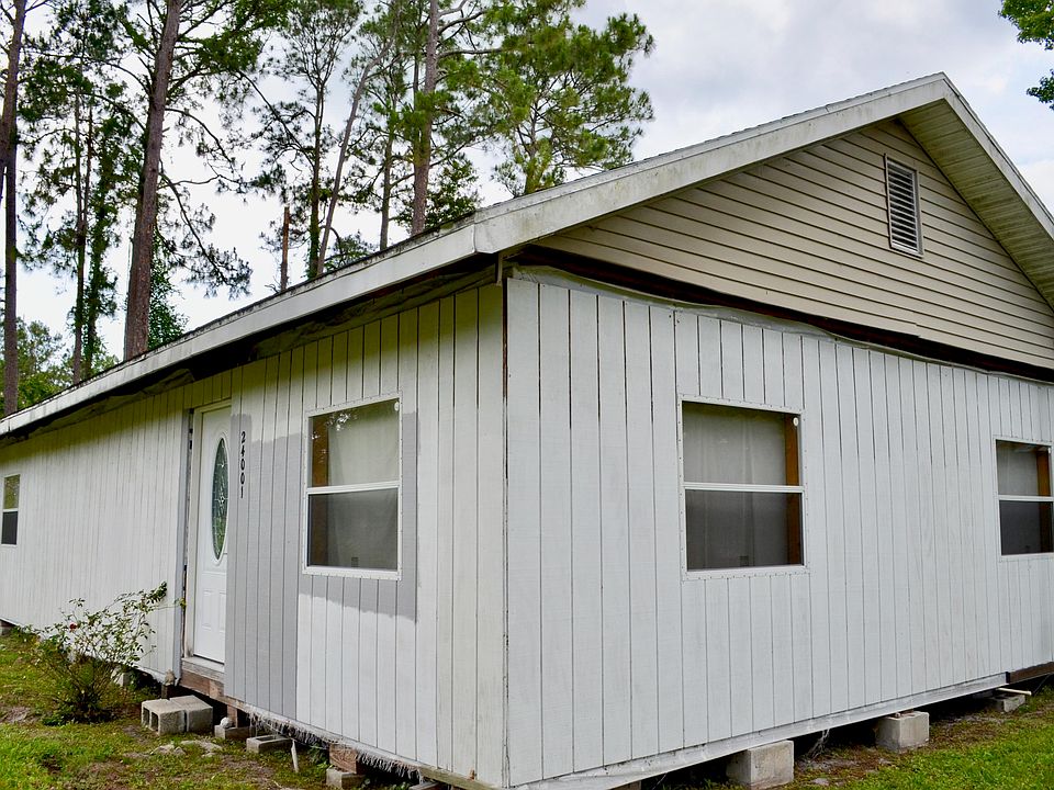 This home has so much potential!! This can be a 2 bedroom, 2 bath or a 3 bedroom, 1 bath with a few small changes. The city water and sewer piping is ready to be hooked up so no well or septic needed. The shingles on the roof need replacing, but plywood decking is in great condition, and seller ordered metal sheets (to be included with the right offer - just need to be cut to the right length). The property is cleared, offers a pole barn in the backyard, and is located very close to the Saint Johns River and Lake George!!