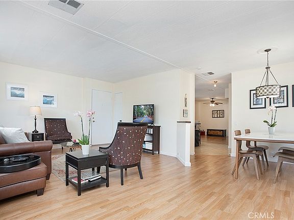 Come see this wonderful home ideally located inside the gates of Forest Gardens Mobile Home Park, a 55+ community. Take a seat on your covered front porch and enjoy the wonderful cool morning breeze. You'll love the openness of the floorplan upon entering the home and the abundance of natural sunlight throughout. Newer dual-paned windows and slider are an added plus. The spacious living and dining areas have laminated flooring. The kitchen with tile flooring opens to another multi-use area with endless possibilities. There are ample kitchen cabinets for storage and a kitchen island with seating for two. Granite countertops with a dual stainless sink, refrigerator, dishwasher, and garbage disposal are all newer additions. The laundry area is located just off the kitchen, with a full-size washer/dryer and built-in storage as well. The Master bedroom offers you a private en-suite bathroom with a single sink vanity, a walk-in shower, and plenty of closet space behind 2 large sliding mirrored doors. The secondary bedroom with direct access to the guest bathroom also has a large closet with mirrored sliding doors. Both bedrooms have laminate flooring. A newer AC unit, hot water tank, heat pump, and the roof sealed are just a few added perks. The carport fits 2 cars. You'll have a maintenance-free yard and plenty of time to enjoy all the activities in the community! Close proximity to restaurants, shopping, and the freeway. This is the perfect property for you to call home!