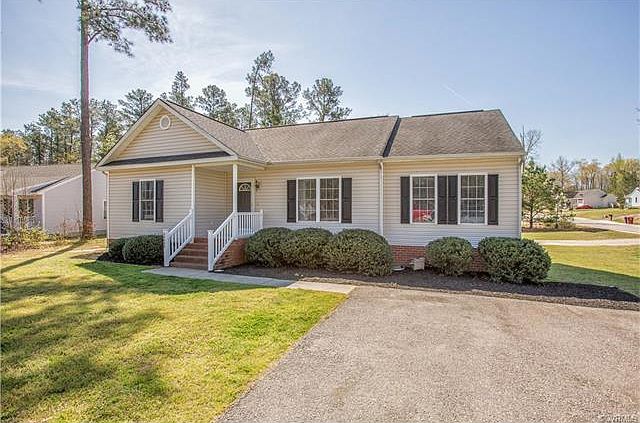 Welcome to 24001 Sequoia Road in the Dinwiddie neighborhood of Chesdin Forest! This 1536 sq. ft. rancher features 3 bedrooms, 2 full baths to include the master with full en-suite. As you enter into the home, you will be amazed at the cathedral ceiling and room size of the family room that provides ample light from the double large windows. Easy flow into the large eat-in kitchen that includes a pantry, tile backsplash, new grey modern countertops, plenty of cabinet/countertop space, access to the deck and backyard. Kitchen can easily accommodate an island or butcher block table. For your added privacy, Master bdrm en-suite is located on the opposite side of the home and provides a walk-in closet, ceiling fan, private bthrm with tub/shower combo and ceramic tile floors. Two nice sized bedrooms with large closets and plush carpeting located off the family room has a full bath situated between both rooms. Hall bath has a large cabinet, ceramic tile floors and tub/shower combo. Located within close proximity to I85, Ft. Lee, Mall & Schools. SELLER TO PAY $5,000 TOWARDS CLOSING COST! Don't Wait, Call today!