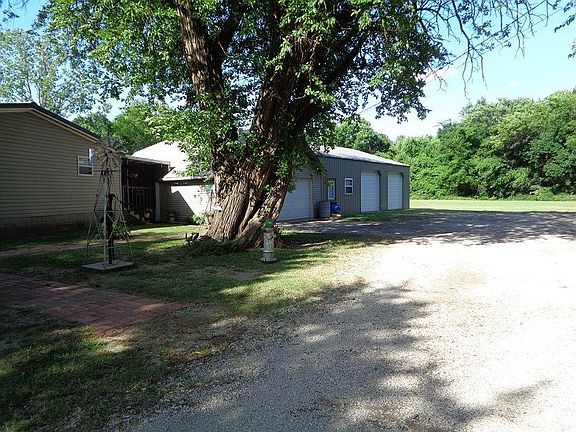 Great 3 BR, 2BA home tucked away on 2 acres just outside city limits. Screened in porch, nice yard, garage 32'x20' & shop 42'x32'. East side of property goes to Main Street.