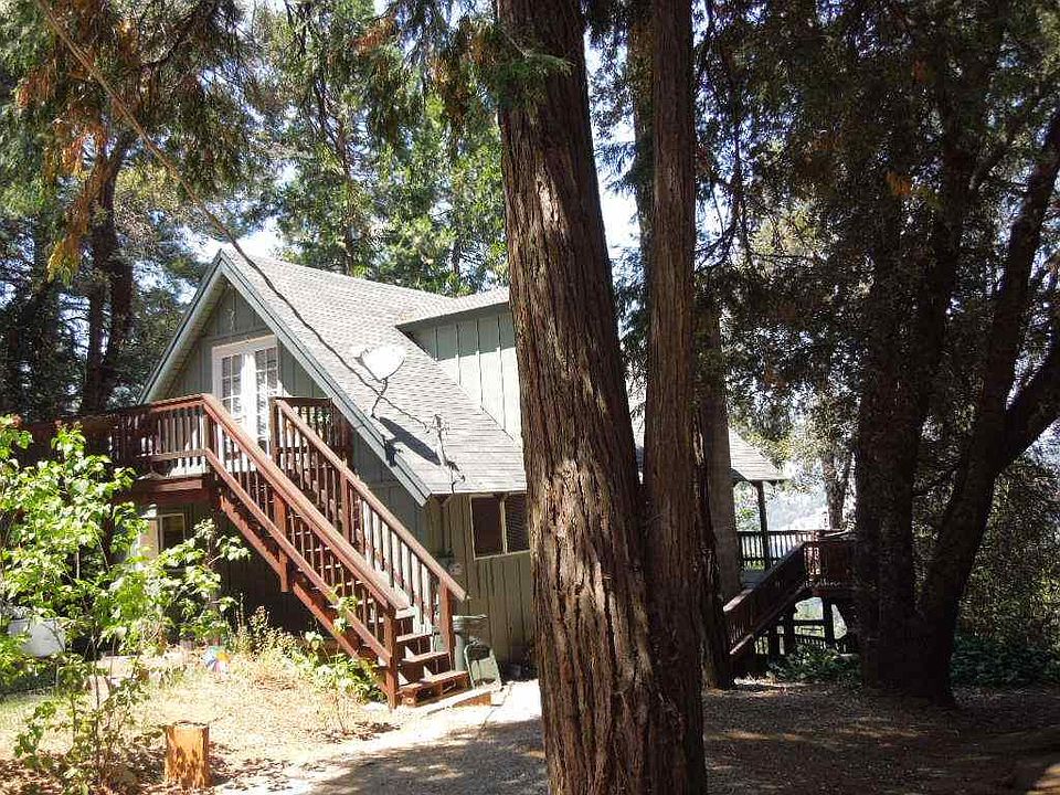 Nice two story cabin with 2 bedroom and 2 bath in Volcano with 1.3 acres of flat usable land with Views and nothing but forest behind home!! Covered deck to sit out and enjoy the incredible views. Fully fenced with wood shed that holds 4.5 cords and two other sheds and a 24X30 shop/garage. All copper pipes have been re-done, new water heater, new forced air furnace, 20-35 gpm well. Painted 5 years ago with two coats of paint, Dual pane windows, hardwood floors downstairs, Jacuzzi tub upstairs.