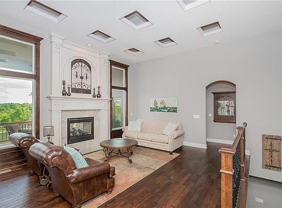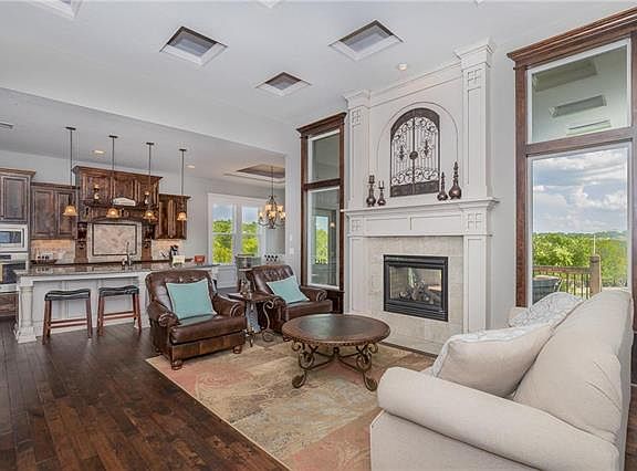 Better than NEW! Every detail was CUSTOM selected in this beautiful REVERSE 1.5 story. Once through the front door you are wowed by the OPEN Concept with cut-away ceilings w/ mood lighting & built-in lighted art nooks. HIGH-END see-through fireplace to the covered deck access from both the kitchen & the luxurious master w/ rain shower. Features desirable main level laundry which walks through to the master closet. Kitchen boasts a HUGE accent finished island w/ breakfast bar seating for 4 and under-mounted sink.