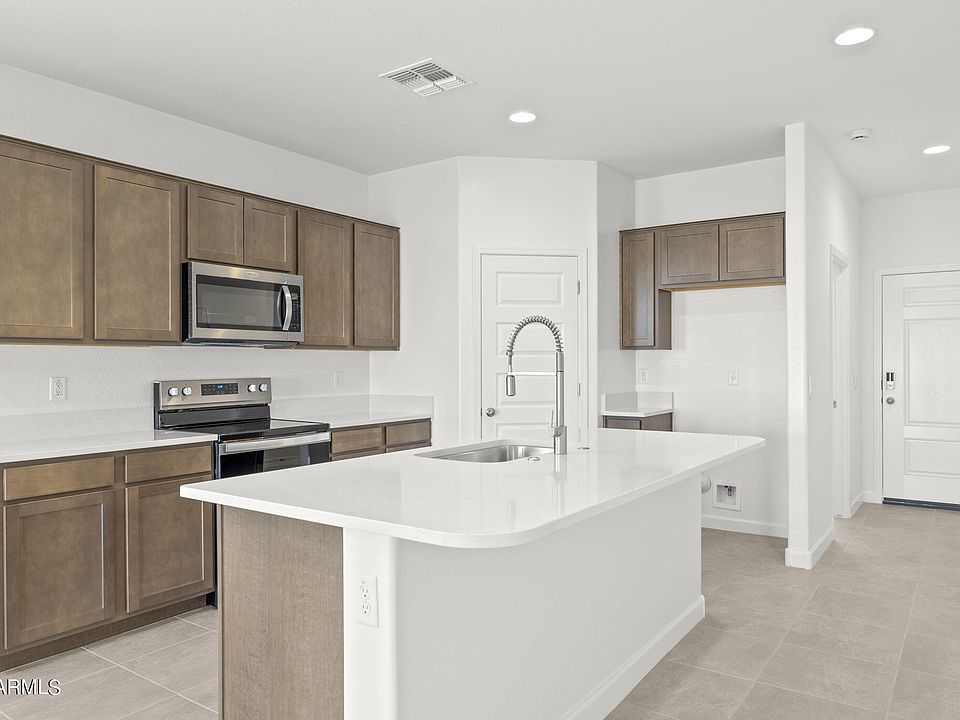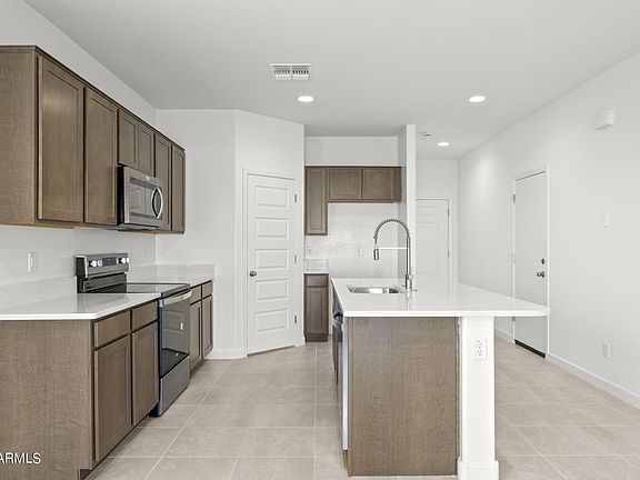 Brand new construction! DOUBLE GATE! Home estimated completion July 2024. See our exciting new community located in Buckeye of Desert Moon Estates. This popular Loon floor plan features 4 bedrooms and 2 baths with double gate and large lot! White shaker style Cabinets, upgrade 18 x18 inch tile through main living areas, upgrade carpet in bedrooms only. Kitchen has upgraded stainless steel appliances, range/oven, Refrigerator microwave and dishwasher. Quartz kitchen counter tops Washer & Dryer Window blinds throughout with verticals on Sliding Glass Door. Pictures represent other model homes.