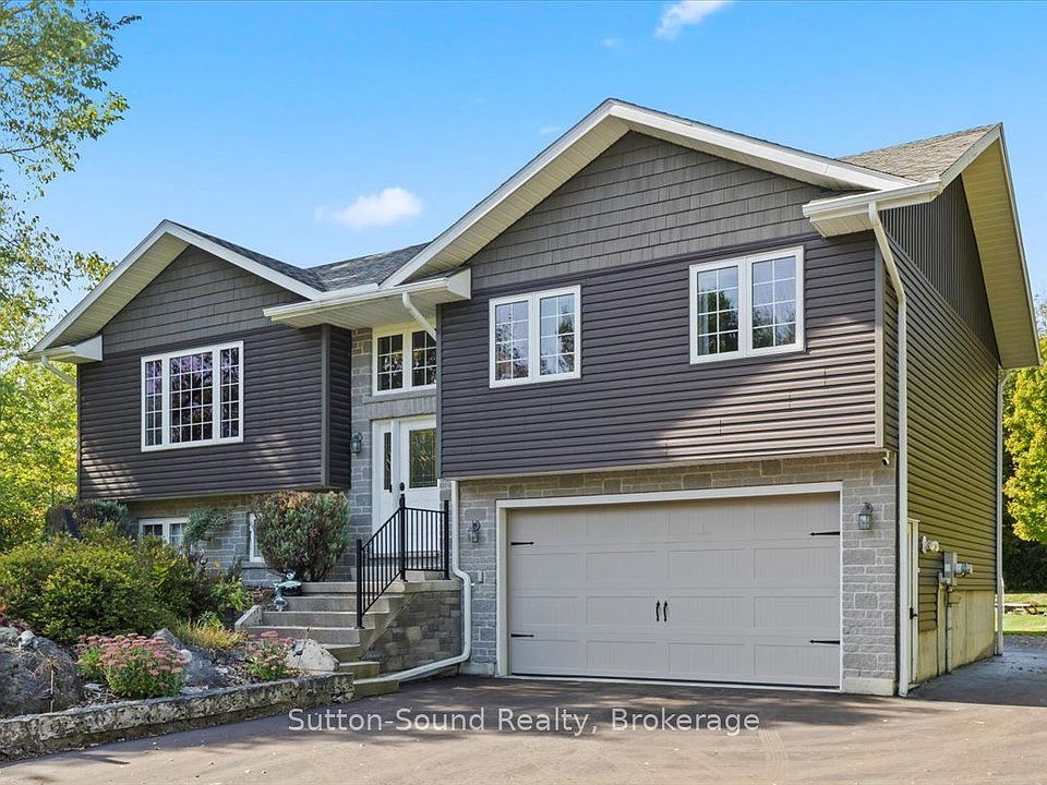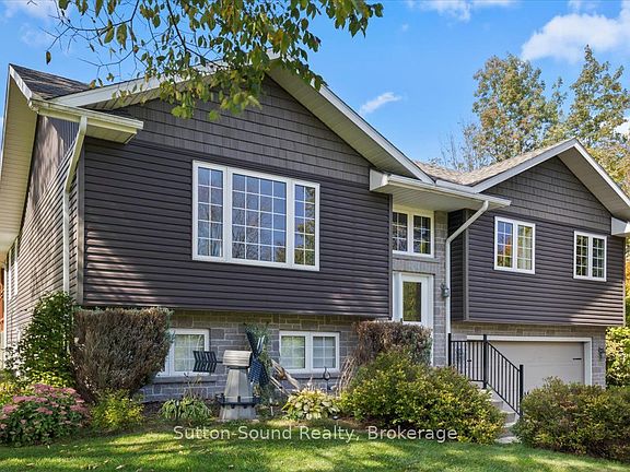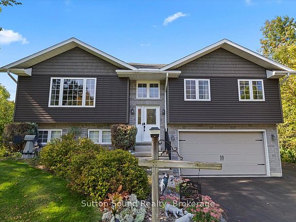 Welcome to this stunning family home siting on ONE acre, offering modern updates and thoughtful design in a desirable Georgian Bluffs location WITH natural gas. The open-concept family room features cathedral ceilings, engineered hardwood floors, an eye catching stone (gas) fireplace, and walkout to a covered deck. The showpiece gourmet kitchen boasts a 12' x 5' island with granite countertops, stainless steel appliances, coffee bar with wine fridge, and walk-in pantry. The spacious primary suite includes a step-in closet and ensuite with in-floor heating, while two additional bedrooms feature updated flooring and custom closet shelving. Main floor laundry adds convenience. The finished basement offers a sun-filled rec room, gas fireplace, large bedroom, mudroom, storage, 2-pc powder room, and walkout to a patio, with potential for an in-law suite. A heated/air-conditioned workshop and garage with bench and heater are ideal for hobbyists. Outside, enjoy the large mature yard with firepit and 12' x 20' Shelter Logic enclosure for extra storage and a Mennonite built 9' x 12' garden shed. Smart home lighting throughout and professionally maintained mechanicals complete this move-in ready property. Everything is ready for you - just move in and call it HOME!