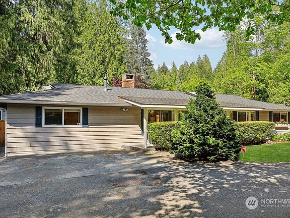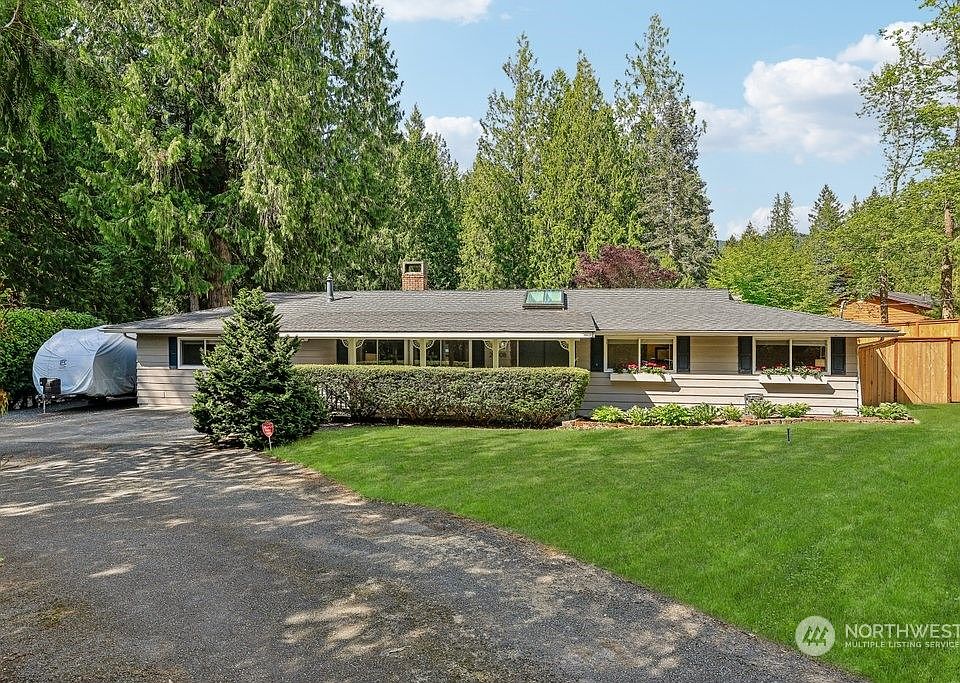 Pride of ownership! Perfectly manicured 3 bed w/flex rm, 2 bath single story rambler nestled in the cascade foothills of Tiger Mountain. Massive skylight greets you into welcoming foyer that leads to a spacious living rm open to an updated kitchen newer ss apps, & cozy see-thru wood burning fp w/an eat-in dining space. Rest assured the bones of the home are immaculate; Newer roof circa 2020, completely cleaned out crawlspace, new fence on exterior, & updated high efficiency furnace. One end of the home features 3 beds; including a primary bedrm w/ an ensuite ¾ bath. Opposite side of the home features a utility rm, den/office, & an oversized rec rm. Backyard is fully fenced, w/ an entertaining sized covered deck, outbuilding & rv parking.