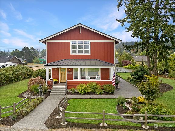Beautiful remodeled two story, rumored to be a Sears & Roebuck kit home from early 1900's. Lovingly restored and remodeled with today's conveniences, this home is a show piece! Situated on a large corner lot, the covered front porch beckons you to sit & enjoy. Enter the open living room, warmed by the pellet stove, with built-ins and loads of windows. Dining area shares custom wood, live-edge counter overlooking spacious kitchen & the cozy side deck. Main level bedroom, penny tile bath & a cozy reading room framed by French doors leads to the gorgeous yard. Upstairs is a fabulous primary & secondary bedroom/bath suite, third bedroom, office/bunkroom and a spacious, finished attic. Also a 10X14 shed & large covered hot tub.