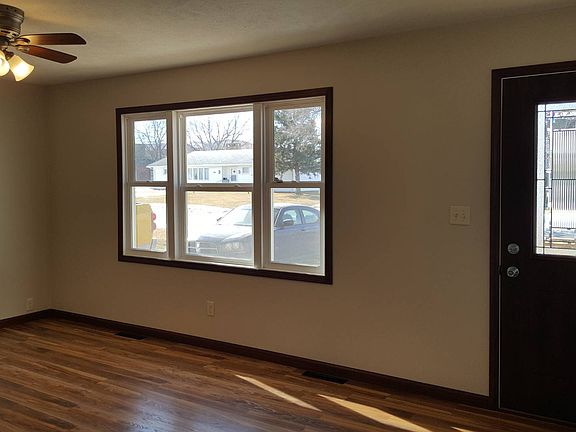Completely remodeled in the past 6 months. New roof, siding, windows, soffit, facia and 2 new decks. Interior has new drywall, new carpet in bedrooms, new wood laminate flooring in the rest of the house. Entire new bathroom, kitchen, furnace and central air, hot water heater and whole house water filter. New stainless steel appliances in the beautiful open kitchen. This home is move in ready and maintenance free for years to come. Great starter home or retirement home. Close to the Fitness Center and child care center. Corner lot with a double car detached garage.
