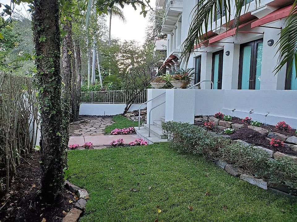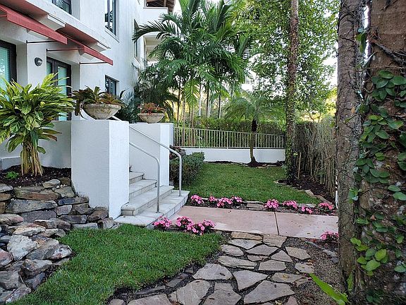 RARELY AVAILABLE Ground floor unit w/a yard in Avignon in the Gables, a boutique bdlg of just 20 units across from Granada Golf Course. This Magnificent apartment has 2 Bedrooms + Den (can easily be 3rd Bedroom/Office)/2.5 Baths, 1775 Sq Ft. w/private yard of 1000 SF Yard for your entertaining pleasure. Unit comes w/ 6'x8' Storage, custom Gourmet Kitchen w/Thermador Gas Range, custom built-ins, 10' Ceilings, 8' Solid Wood Doors, Brazilian Walnut wood floors, spacious built out closets, Hurricane Impact Windows & Doors, 2 assigned covered Parking spaces. Spacious Master Bath has a jetted tub & Shower, dual sinks, bidet. Bldg amenities: Beautiful lobby, well equipped fitness room, landscaped pool area w/large covered terrace & BBQ, recreation room. PET FRIENDLY BDLG. Centrally located.