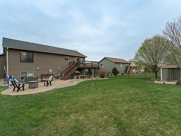 Welcome home to this immaculate 4-bedroom, 3-bath split-level gem! Excellent curb appeal with new roof and new fence. Step into the bright foyer leading to a vaulted-ceiling living room that flows seamlessly into the open kitchen, featuring stunning hardwood floors, a massive center island with seating, a pantry, and upgraded appliances. Sliding doors open to a spacious deck overlooking a beautifully landscaped backyard with an in-ground sprinkler system, a custom paver patio, and a newer high-quality shed — perfect for summer gatherings.