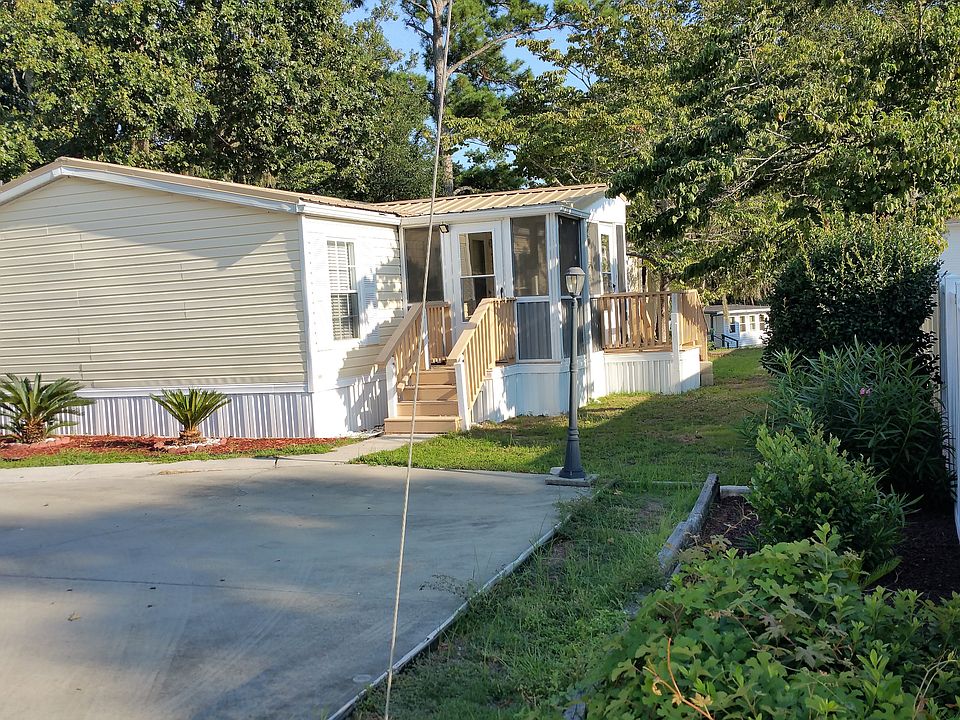 Parking in the front and rear of property will accommodate several vehicles and a boat. Perfect spot to park your golf cart behind the utility building. Near the ICW, public boat landing very close by and a short golf cart ride to the beach. 10' x 18' Utility shed is wired and has work bench. Home has den with fireplace. A separate living room can be used for home office, sitting room or game room. Screened-in front porch has a/c! New roof, fresh paint. HVAC is 2 years old. This is the perfect spot for someone that wants a beach getaway! Appliances included and the washer / dryer are only a couple of years old and have barely been used. New tub/ shower combo in master bath. New carpet in master. Privacy hedge on one side and fence on the other. Screened in front porch is a great place to relax. Move in ready! ALL MEASUREMENTS ARE APPROXIMATE AND NOT GUARANTEED, VERIFICATION IS THE RESPONSIBILITY OF THE BUYER. PLEASE NO AGENTS.