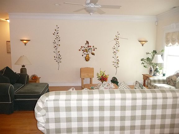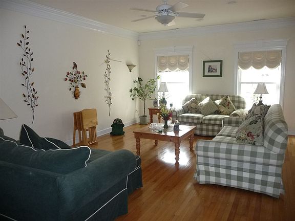 Beautifully maintained home. Front entrance on Birch Road. Hardwood flooring thru out, granite counter tops in kitchen. 3 closets in the extra large master bedroom, large master bath with beautiful tile, double vanities. Rounded corners, crown molding ,fireplace in family room, 4 tv's included, ample storage and closets. Full size stack able washer and dryer included detached shed with work bench, pull down steps to a loft with , elec and heat. extra shed for lawn mower. Mature landscaping for full privacy. Large deck with retractable awning for outdoor entertaining. This house is immaculate and ready for a new homeowner.