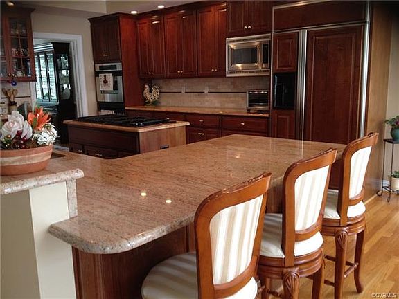 PRICE REDUCED! First offering in Bell Tower! Custom-built home over 4,300 square feet. Huge MASTER SUITE with walk in closet, double vanities, jetted soaking tub, linen closet, & tiled stand in shower, 4 additional LARGE bedrooms, plus an additional bedroom on first floor, can be used as a study/office, total of 3 full & 1 half bathrooms. This BRICK Executive Home is privately located in the middle of a quiet cul-de-sac with manicured grounds, large rear deck & oversized 2-car garage! Irrigation & Security Systems, a HUGE gourmet KITCHEN & separate breakfast "room" is stunning, with granite counter tops, back splash, double ovens, built in dishwasher & sub-zero built in refrigerator. Jenn-Air gas stove top with grill, & large walk in pantry! Beautiful open concept 1st floor with 11 ceilings, arched doorways, columns & hardwood floors throughout. Beautiful & sunny Florida room with wet bar. The family room is complete with lots of built-ins, surround speaker system & marble gas FP. Beautiful moldings throughout most of the home & double stairs. Conveniently located to all major highways & Short Pump Shopping Center. Godwin High School District too! Must See!