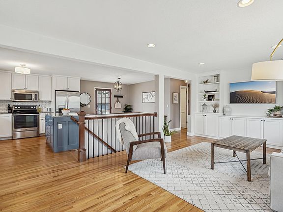 Enjoy the stunning view of the Minneapolis Golf Club from your deck in this beautiful home on a quiet end street. Step inside to an open-concept main living space filled with natural light, featuring built-ins in the living room and a completely updated kitchen with granite countertops, a center island, and stainless steel appliances. Nearly every surface has been refreshed. With its thoughtful updates and serene setting, this home offers both comfort and style in every corner.