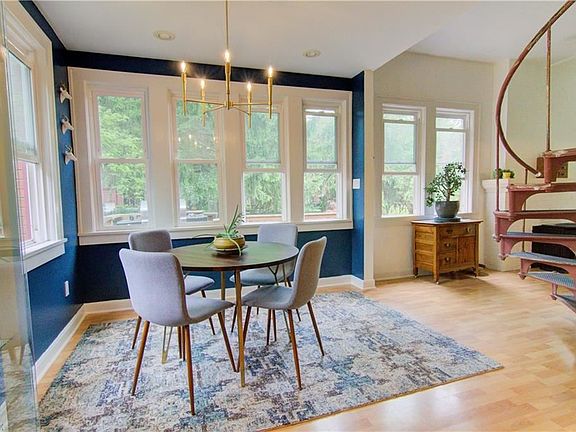 The grand stone staircase and dual front porches greet your arrival to this all brick gem located in the heart of Cleveland Heights. Light, Bright, and Updated in all the right ways with original architectural details preserved. Grand living room with carved marble fireplace. Unbelievable patterned hardwood floors with walnut inlay and arrowhead detail. Original leaded glass windows, woodwork, crystal chandeliers, and fixtures throughout. Built-in cabinets and beamed ceiling in dining room. The renovated kitchen, open to the sunlit breakfast room, features new cabinets, granite counters, recessed lighting, 2 sinks, and high end stainless steel appliances. Office/den, half bath, and family room on first floor. Over 4000 square feet on 1st and 2nd floors plus walk up attic for storage. 2 full baths on 2nd floor, and all of the bedrooms are spacious. Addition on 2nd, currently used as a rec room, could make an amazing master suite. The deck and patio overlook the secluded, parklike backyard with boardwalk path and water feature. Amazingly private yet less than a mile to several shopping and entertainment districts (Cedar/Lee, Cedar/Fairmount, Coventry, Shaker Square) plus Shaker Lakes. 5 minutes to Cleveland Clinic, University Circle, and Case Western, and a quick drive downtown. Other updates- 53 new windows in 2005 and 2006. Complete roof tear off in 2005, high efficiency boiler in 2009 and hot water tank in 2013.