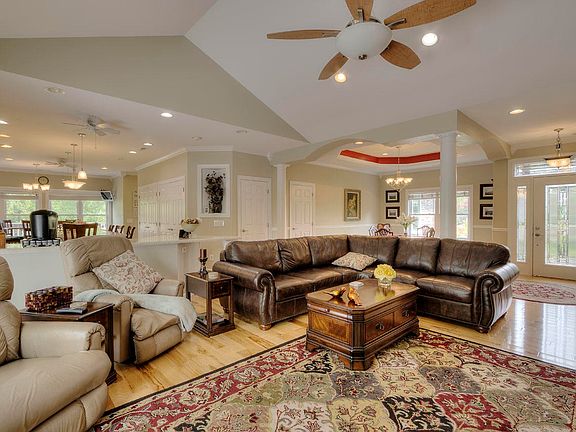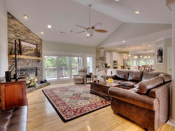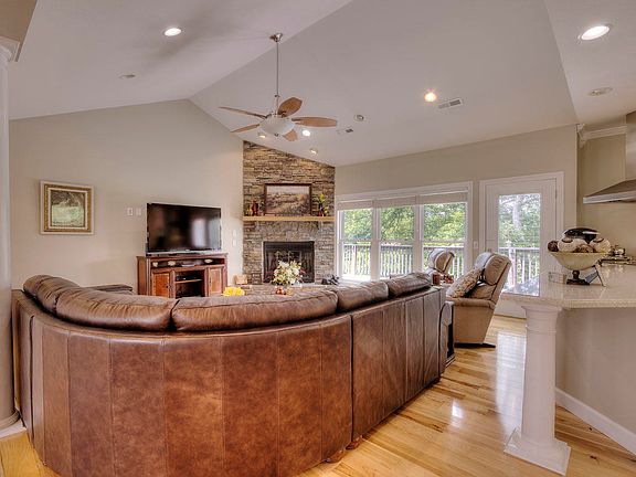 Splendid home for permanent residence or a second home. 6BR, 5BA & 2 half baths spread out over 3 stunning levels. A tastefully decorated,large, comfortable, well loved home that has been meticulously maintained. It is warm and welcoming from the minute you open the front door and enter the great room with its vaulted ceiling, wall of windows and stone floor to ceiling gas log fireplace. To the right is a stately dining area with windows and a trey ceiling. You can see the huge beautiful corian topped island with seating that balances out the rest of this large kitchen.Stainless steel vent hood and appliances. Lots of cabinets and a huge pantry. Down the hall are 3 bedrooms with substantial closets. Two are joined by a jack-n-jill bath. Master is spacious with a trey ceiling and french doors that open to the deck. Attached master bath has lots of counter and prep space, separate vanities, jetted tub, and a large tiled walk in shower and a walk in closet. Upstairs in the bonus area is a full bath with private water closet and the sweetest space ever to play or just relax. This bedroom is a treasure, a private, joyful space. Main level has a breakfast nook that is flooded with light from the windows, a laundry room and a half bath. Then you enter the 2 car heated and cooled garage. Downstairs could be separate living quarters if it was needed. There is a full kitchen and dining area with door to lower deck. Then there is the theatre room, with plenty of space for all to enjoy. You can retreat to one of the two spacious bedrooms on this level. There is a full bath a large storage area and a laundry room. Entrance to the lower heated and cooled 1 car garage with plenty of paved parking. This home has many stunning features as well as practical ones like a central vac. Covered deck area off the kitchen for dining al fresco.