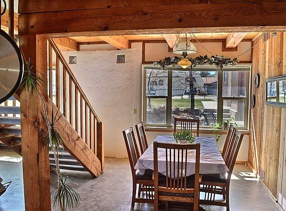 Seclusion and relaxation in the middle of town! This 5 bedroom/2 bathroom house has a rustic cabin feel with gorgeous views of Heart Mtn and Mentock Park off the back deck. Front secluded patio with stamped concrete. House is currently used as a vacation rental, and some restrictions apply in zoning, but could continue. No maintenance deck. Sq footage per court house records.