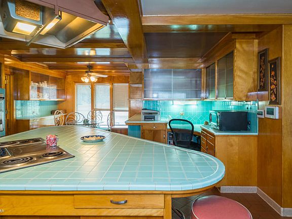 Mid-Century Modern! So many original features like maple paneling & cabinets, coffered ceiling, tile & hardwood floors. You must see this amazing kitchen and baths with beautiful original colors (turquoise) & design almost completely untouched. Double oven, breakfast nook and music area. In-ground pool, decorative concrete block fencing. Each extra-large bedroom has a huge walk-in closet.