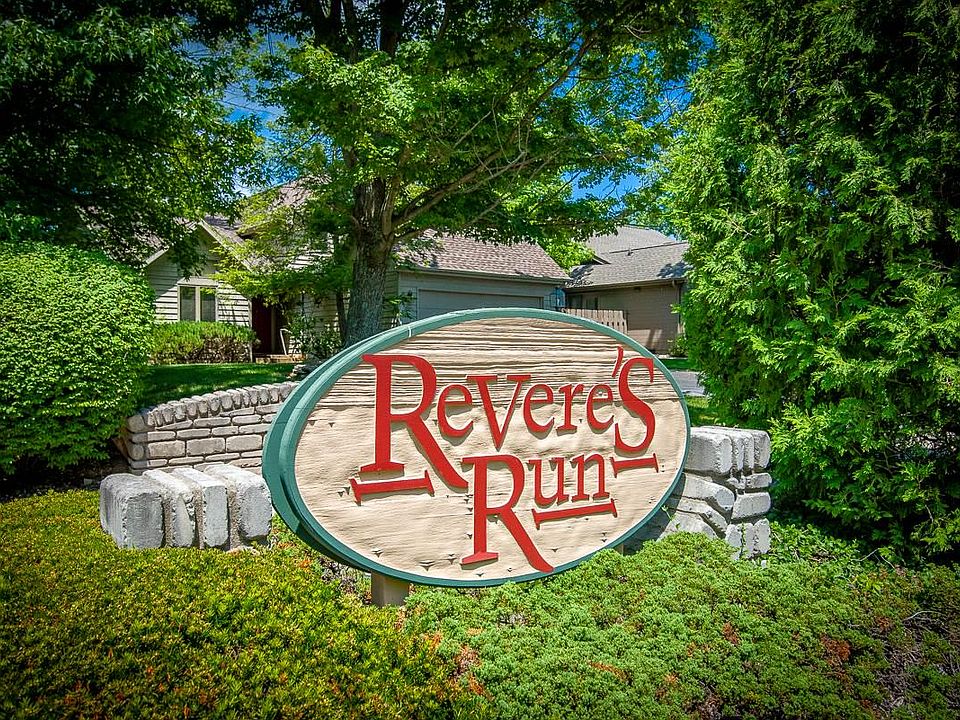 Contemporary floor plan with open volume ceilings, stairway and loft. At the entry you will see a Frank Lloyd commemorative stained glass pattern 'kinder-symphony'. Freshly painted and carpets cleaned throughout! A master bedroom/master bath and a laundry room are both on the main level. The main level bedroom accesses a private deck. Private courtyard on the side and back of the great room/dining room with a deck. Second master bedroom on the upper level with a Jack-and-Jill-like bathroom connecting a 3rd bedroom that could be used as a bedroom or as an enhancement to the master bedroom by creating a magnificent master bedroom suite with study. Access an upper level balcony from the upper level master bedroom. This is one of the rare end units in Revere's Run, which means you do have one end open to natural light that doesn't look directly onto the next house. Kitchen opens to the dining and great room. Viking gas range is perfect for the serious cook. Stainless steel appliances. Washer and dryer included. EXCLUDED: Butcher Block island, Player Piano