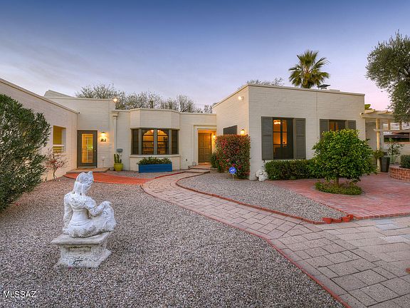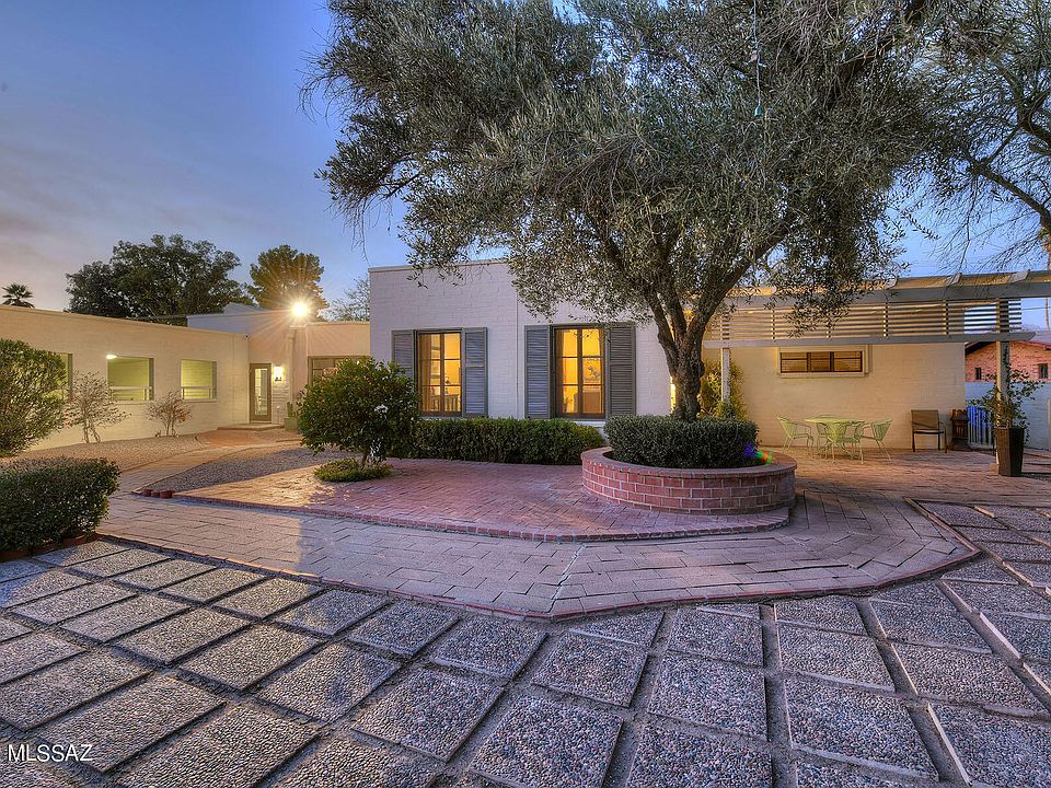 On the National Register of Historic places, with historic tax status. This stunningly remodeled 1951 territorial-style home was commissioned by Arizona Inn founder Isabella Greenway and designed by renowned architect Arthur T. Brown. Lovingly restored with 2450 sq. ft., this 3-bedroom, 2-bath home exudes the charm and character of the Arizona Inn including Arizona Inn designed archways, tinted concrete overlay floors throughout, all new paint outside and inside on primarily solid plaster walls, glorious living room with fireplace and custom made drapes made by Arizona Inn's seamstress. Chef's kitchen features re-built cabinets and new hardware, new 4-burner Viking stainless steel gas range & oven, new walnut butcher block counter tops, new subway-tile backsplash, retro-style fan,