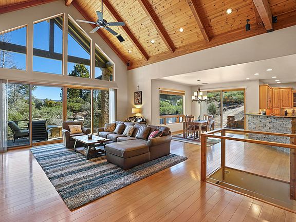 Enjoy your morning coffee in the tall ponderosa trees under a private covered patio. Beautiful low Maintenace landscaping. Installed all new nest, hardware smoke detectors in home. Replaced roof in August 2023 with 2-year warranty and HVAC was updated in June 2021, water heater replaced 2021 and new Viking Dishwasher in August 2023.