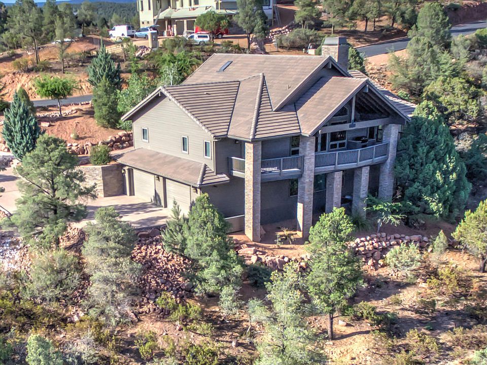 • Exterior Features: Covered Porch/Deck, Tall Pines on Lot, Porch/Deck, Landscaped, In the Trees, Covered Patio, View of Mountains, View of Golf Course, Satellite Dish, Patio, Panoramic Views, Work Shop, Grill, Drip System