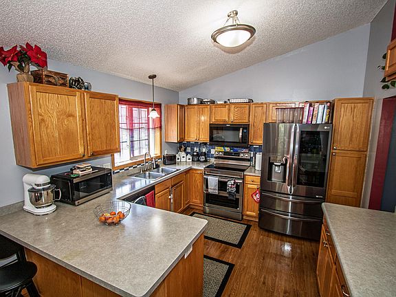 Charming Northfield Home with Superb Outdoor Living in a Prime Location! Featuring vaulted ceilings that create a wonderful sense of light and space. The large, open kitchen provides ample room for cooking and gathering, making it the heart of the home. Your living space extends seamlessly outdoors to an expansive deck—perfect for summer barbecues—and a huge rear patio ideal for relaxing evenings. The private, fully fenced backyard offers a secure play area for children and pets to play freely. As a bonus, the convenient storage shed is included! Location is everything, and this home delivers. Situated in a desirable neighborhood with adjacent walking paths, you are just moments from the natural beauty of Spring Creek Park. Don't miss this opportunity. Schedule your private showing today!