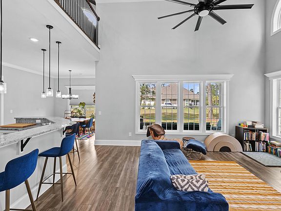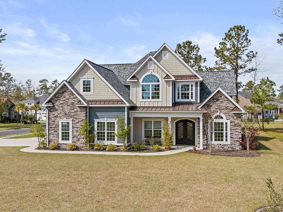 A custom home that's only four years old sounds very appealing, especially with its 5 bedrooms and 3.5 bathrooms with a 3 car garage. The location on a 1/2 acre corner lot in a intracoastal waterway community adds an extra layer of charm and potential value. This property seems to offer a perfect blend of modern amenities, spaciousness, and scenic surroundings. The exterior featuring Hardie plank siding along with quality masonry work suggests durability and aesthetic appeal. The wrought iron doors add a touch of elegance as you enter the home. Inside, the layout is spacious and inviting, with a study and formal dining room adding to the sense of sophistication. The high ceilings in the great room enhance the feeling of openness, and the open floor plan creates a seamless flow throughout the main living areas. With the primary bedroom located on the main floor, it offers convenience and privacy. The tray ceiling in the master adds an elegant touch. The primary bathroom's custom tile shower, double sinks, and tub provide a luxurious and functional retreat.The kitchen sounds like a chef's dream with granite countertops, known for their durability and has ample workspace for meal preparation. The gas range gives you an upgraded cooking experience. Moving upstairs, the presence of a loft provides additional living space, which could be utilized for various purposes such as a relaxation area or entertainment zone. The bedrooms with vaulted ceilings upstairs offer a sense of airiness and charm, making them cozy yet visually appealing spaces. Buyers seeking a comfortable and luxurious lifestyle with proximity to water activities would likely find this listing highly attractive.