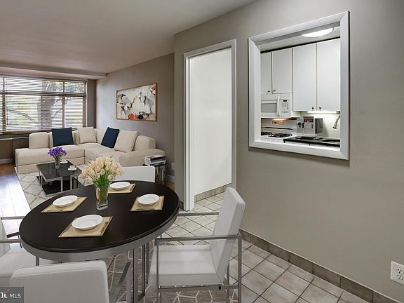 Sunny One bedroom apartment facing east. This apartment is in great condition. It features a renovated bathroom with an updated kitchen with granite countertops and under-cabinet lighting. Wood floors, extra-large mirrored closets in the entryway and bedroom closets with built-ins. The building has a 24-hr front desk, washer and dryer on each floor and roof deck. The Condo fee includes all utilities: electricity, heat, AC, water and gas. Located in the heart of Foggy Bottom, across the GWU med school -one block from GWU Hospital and Foggy Bottom Metro. Close to shopping, restaurants and Kennedy Center and the State Department.