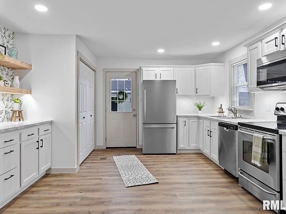 It's all new! Siding, Windows, Doors, Luxury Vinyl Plank Floors, New Custom Kitchen, bathroom fixtures, lighting, paint...you name it, it's been updated or replaced. The new A/C unit comes with a 10 Year Warranty, the furnace and water heater are less than 2 years old. The bright new Kitchen includes Stainless Steel appliances, loads of cabinets and counters, a tile backsplash and an adorable coffee bar. You will love the open concept living area. There is a 2.5 car heated garage with a floored attic. The back yard includes a large patio area. This one is a must see! Home has been pre-inspected for buyer's peace of mind and is offered 'as inspected'. Broker owned property.