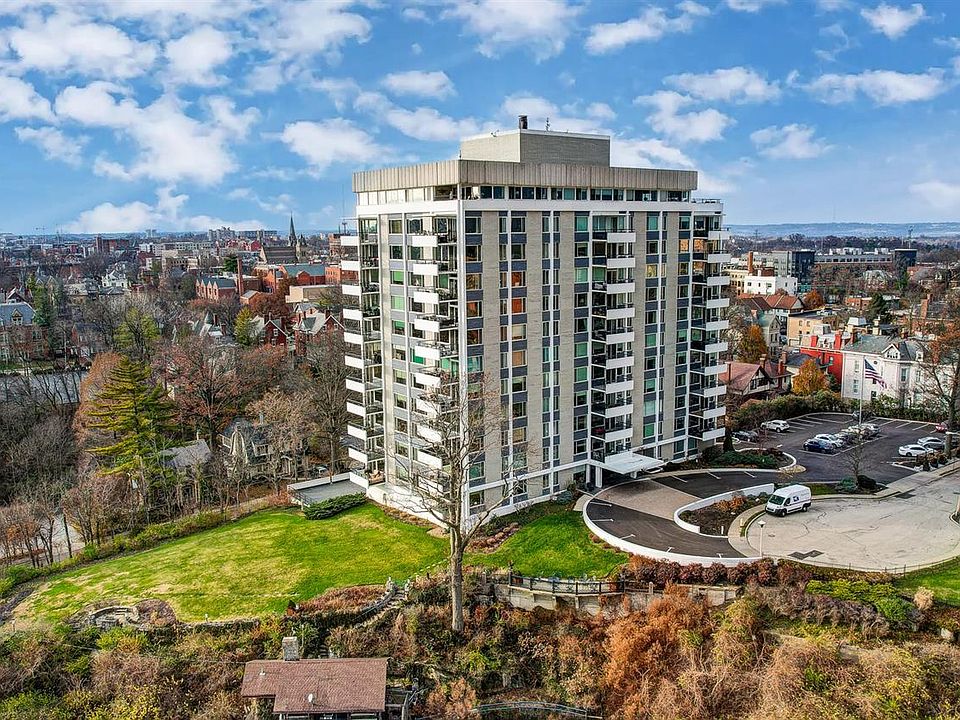 Lovely living in East Walnut Hills! Enjoy panoramic river views, custom built-ins, bookcases, and walnut parquet hardwood floors. Spacious rooms, crown molding, newer windows, large closets, and plenty of storage in every room. Enjoy the expansive balcony located just off the living room with sliding doors to walk out. Just a short walk to everything East Walnut Hills has to offer, including Woodburn Avenue and Eden Park. 2 parking spaces, 1 in the garage. The building has a 24-hour doorman, 7 days a week. Washer and dryer could be added inside the unit in the coat closet. HOA includes heat, AC, landscaping, water, irrigation system, trash, outdoor maintenance, and snow removal.
