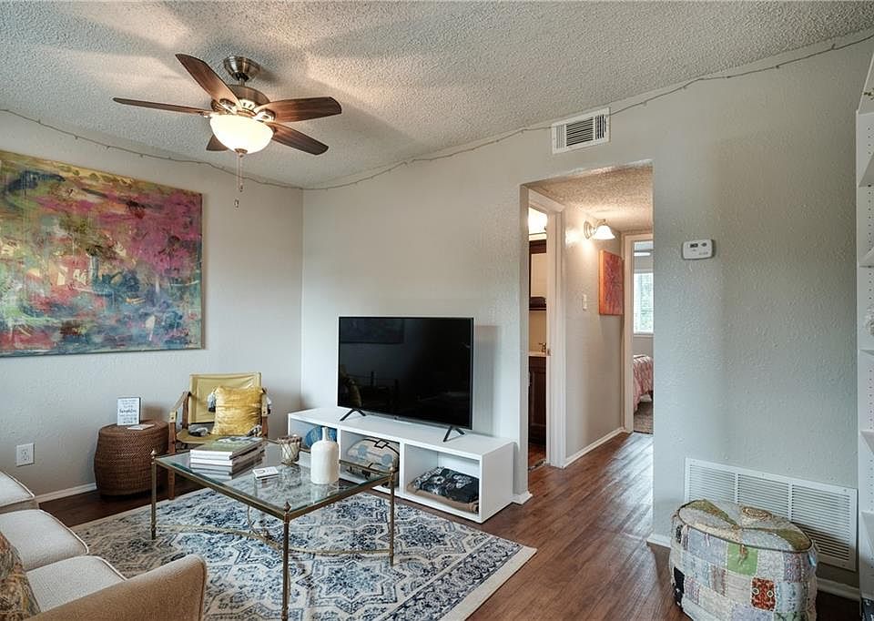 Don't miss this amazing investment opportunity!! Plenty of natural light in this bright and wonderful unit! Front door opens to outside walkway with views of the pool, deck and picnic area below. A great location across from the Haymaker, the condo is only a 9 minute drive to Central Market, 8 minutes to University of Texas, 10 minutes to Rainey Street and 11 minutes to downtown Austin! Owner has gated, assigned parking spot that can be transferred to the new owner! Well maintained, clean and beautiful! Must see!! Restrictions: Yes