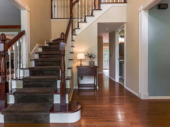 Stunning 2-Story home boasts 4 Beds, 2.5 Baths, and 3,000+ Sqft of living space, including the partially finished Lower Level! Highlights include: 2-Story Entry, crown molding, updated light fixtures (2020), updated Andersen windows (2014), formal Dining Room, Living Room with French doors, Family Room with gas fireplace, built-ins and bay window, recently updated Powder Room (2021), eat-in Kitchen with porcelain tile floors, Cambria quartz countertops, tile backsplash, stainless steel appliances, and pantry, Main Floor Laundry Room, Master Suite with vaulted ceiling and recently updated luxurious Bath (2020) with soaking tub, separate tile surround shower, dual vanity and walk-in closet, hall Bathroom with vanity topped with Cambria quartz, and a partially finished walkout Lower Level with wet bar, Rec Room & workshop with an extra 100 amp electric subpanel! Relax outside on the back patio or on the multi-level deck, & enjoy the level yard backing to trees!