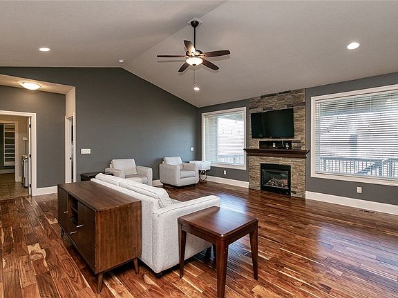 You are sure to fall in love with this Drake Homes resale, on a quiet Cul-de-sac within the Johnston School District. The main level features just shy of 2,000 sq ft of luxury finishes, including 9ft walls with vault in living room, full stone fireplace and wall dividing kitchen from living room, hardwood floors throughout, and massive windows everywhere you look. The masters suite boasts a full tile shower, large closet that flows through to the laundry room with wood shelving, and vaulted ceilings. Downstairs features a large wet bar, 9 ft ceilings, office with glass french doors, tons of natural light from oversized windows, a 4th bedroom and bathroom. The fully fenced in backyard features, established trees, a covered deck on the main level, patio on the walkout level and landscaping around the entire home. Call today for a private showing! All information obtained from seller and public records.